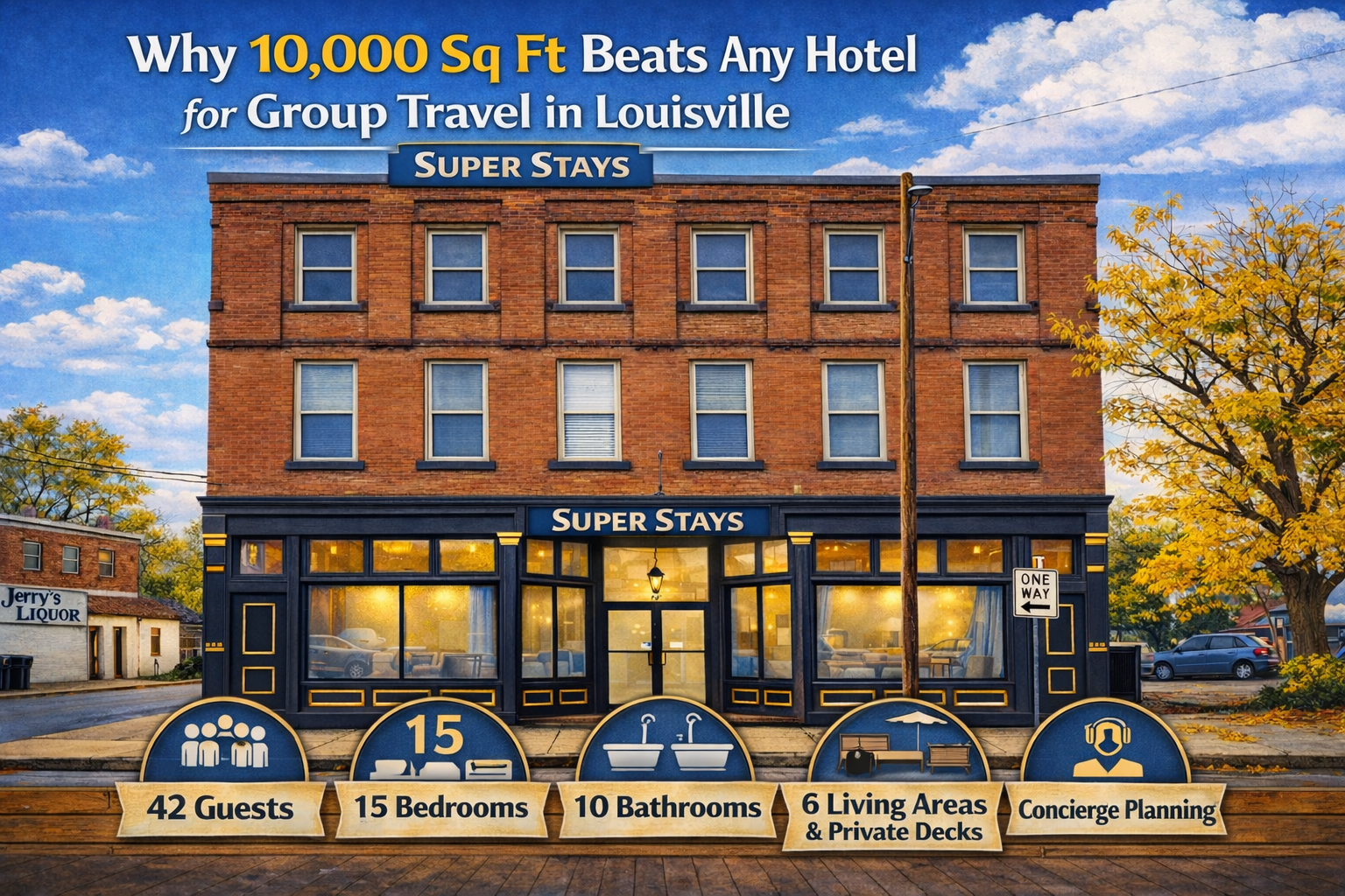 Super Stays provides an exciting and unforgettable group experience in Louisville! Enjoy luxurious accommodations, the privacy of a complete property, and dedicated concierge support to help curate your perfect trip. If you’re ready to create lasting memories that everyone will rave about, let’s start the conversation and begin planning your amazing getaway today!